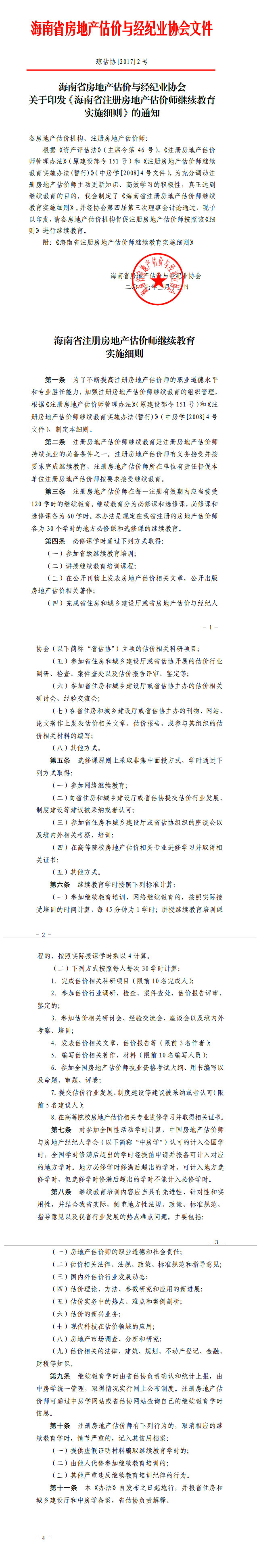 关于印发《海南省注册房地产估价师继续教育实施细则》的通知