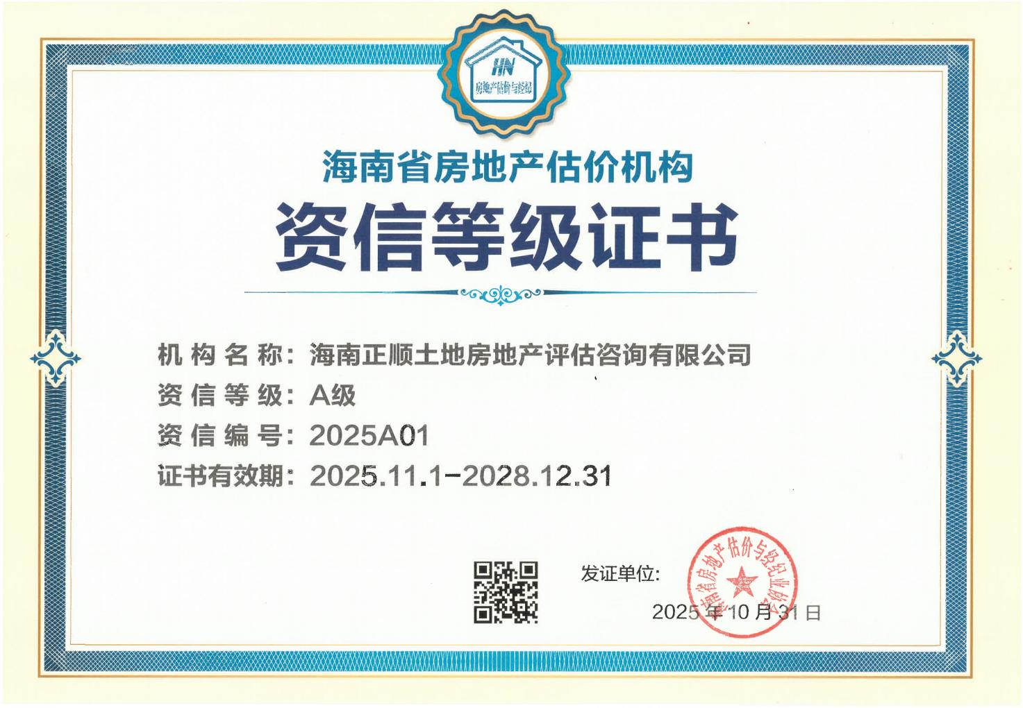 海南正顺土地房地产评估咨询有限公司2025A01