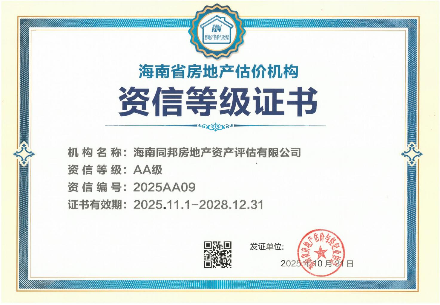 深圳市世纪中盛土地房地产资产评估咨询有限公司海南分公司2025AA07